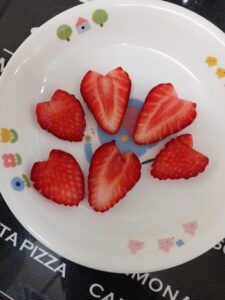 午前のおやつは、牛乳と旬の果物を出しています。